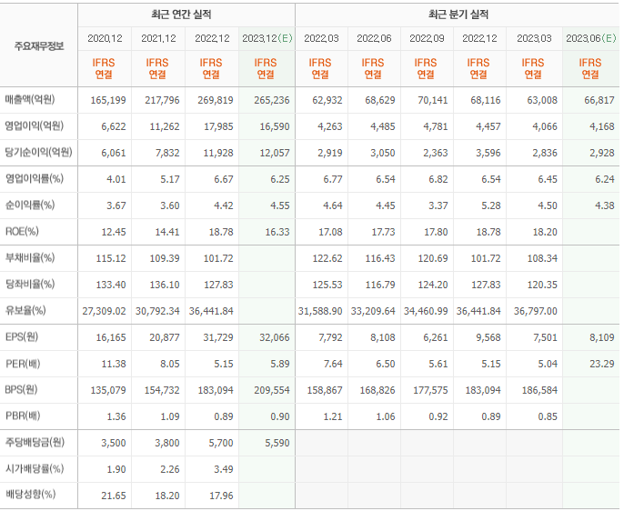 2022년 실적은 26조 9819억, 영업이익은 1조 7985억입니다. 그리고 영업이익률은 6.67%입니다.