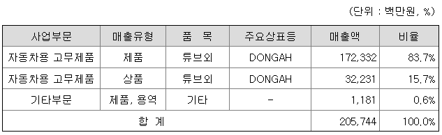 당사는 자동차용 고무제품을 제조하고 있습니다. 국내를 포함한 대부분의 선진국 승용차의 경우, 튜브리스 타이어를 채택하고 있어, 튜브제품의 경우 승용차 시장에서의성장성이 둔화되는 것이 불가피할 것으로 예상됩니다.