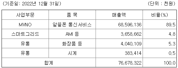 당사는 수익을 창출하는 재화와 용역의 성격에 따라 통신서비스, 스마트그리드, 유통제조 등으로 사업을 구분하고 있습니다.