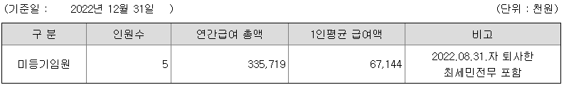 미등기임원의 평균연봉은 6700만원이고 직원수는 5명입니다.