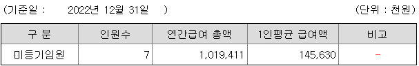 미등기임원의 평균연봉은 1억 4500만원이고 직원수는 7명입니다.