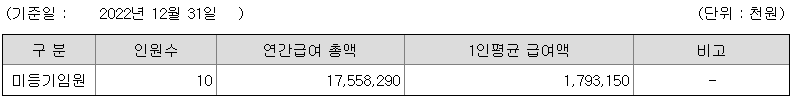 미등기임원의 평균연봉은 17억 9300만원이고 직원수는 10명입니다.