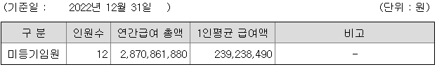 미등기임원의 평균연봉은 2억 3900만원이고 직원수는 12명입니다.