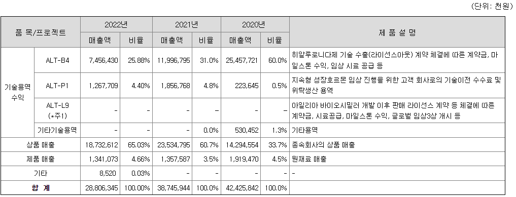 당사는 국내외 제약사들과 당사의 개발 품목(바이오베터 및 바이오시밀러 등)을 개발 및 사업화에 대한 라이선스아웃(License-out)계약을 체결하고 있으며,이에 따른 계약금과 개발과정에서 임상 추진 등 단계적인 기술개발 지표를 달성할 때마다 마일스톤(Milestone) 기술료를 받고 있습니다. 또한 제품화 성공 이후에는 시장에 출시되어 매출이 발생되면 매출액의 일정 부분을 경상기술료(로열티)로 받게됩니다.