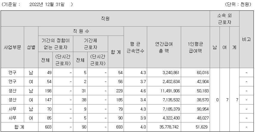 전체 평균연봉은 5100만원이고 직원수는 693명입니다.