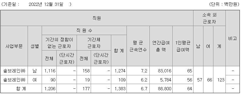 | 솔브레인(주) | 남 | 1,274 | 7.2 | 65 |