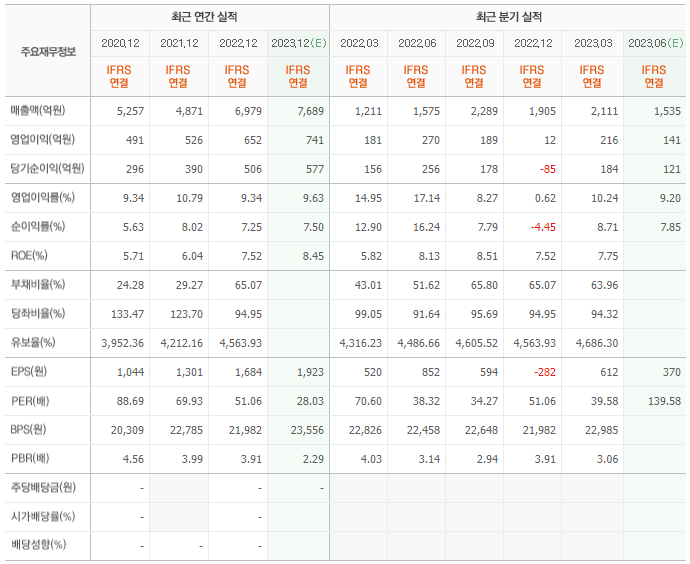 2022년 매출은 6979억, 영업이익은 652억, 당기순이익은 506억입니다. 그리고 영업이익률은 9.34%입니다.