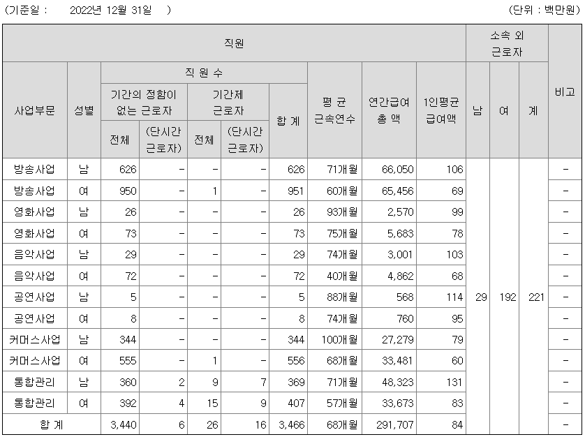 | 방송사업 | 남 | 626 | 71개월 | 106 |