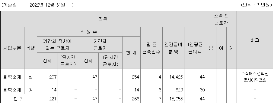 나노신소재 연봉 2022년 기준 공시자료