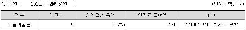 미등기임원의 평균연봉은 4억 5100만원이고 직원수는 6명입니다.