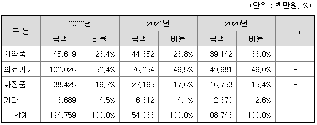 당사는 2001년 3월 의약품, 의료기기 등의 개발, 인허가 등록 컨설팅 서비스 회사로 창업하여 지난 22년간 효능이 뛰어나고 삶의 질을 개선하는 해외 의약 소재 및 제품을 선별하여 국내 판권을 획득하고 수입, 유통하는 수입의약품 사업을 영위하여 왔습니다. 당사는 기존의 의약품 수입 및 유통 사업에 그치지 않고 국책기관과 함께 조직재생에 효능을 가지고 있는 PDRN/PN 관련 제조 기술을 확보하였습니다.