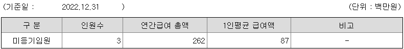 미등기임원의 평균연봉은 8700만원이고 직원수는 3명입니다.