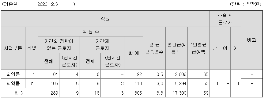파마리서치 연봉 2022년 기준 공시자료