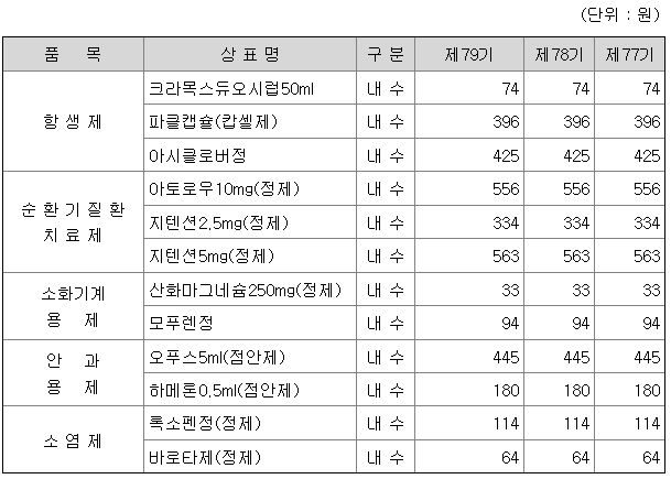 나. 주요 제품 등의 가격변동추이