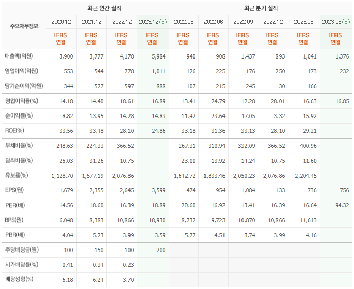 2022년 매출은 4178억, 영업이익은 778억, 당기순이익은 597억입니다. 그리고 영업이익률은 18.61%입니다.
