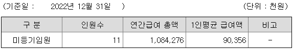 미등기임원의 평균연봉은 9000만원이고 직원수는 11명입니다.