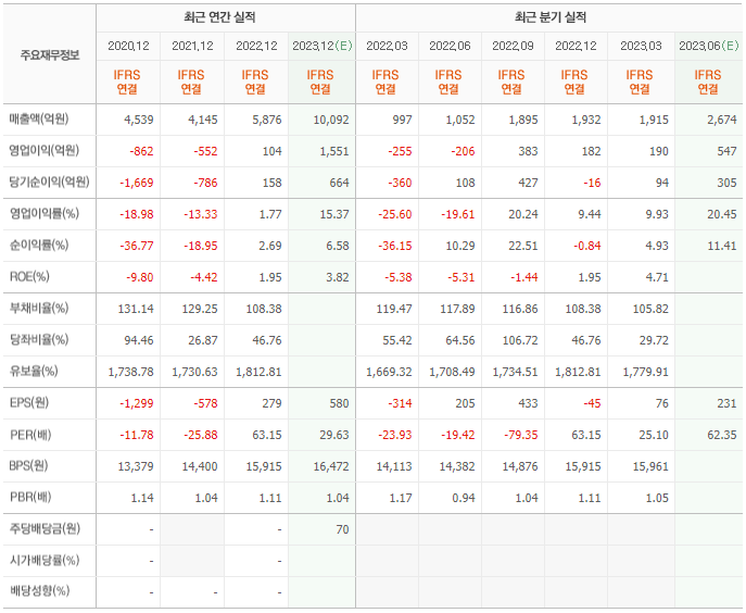 2022년 매출은 5876억, 영업이익은 104억, 당기순이익은 158억입니다. 그리고 영업이익률은 1.77%입니다.