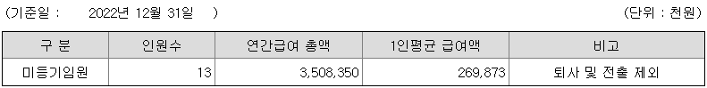 미등기임원의 평균연봉은 2억 6900만원이고 직원수는 13명입니다.