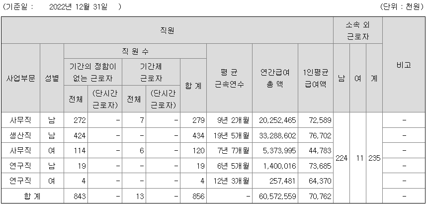 | 생산직 | 남 | 434 | 19년 5개월 | 76 |