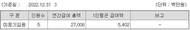 미등기임원의 평균연봉은 54억 200만원이고 직원수는 5명입니다.