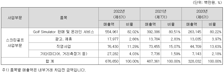 1) 스크린골프(골프 시뮬레이터) 사업부문