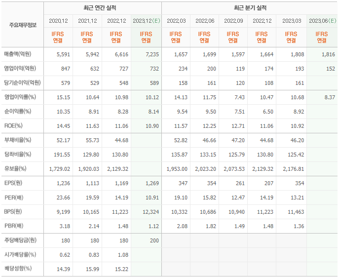 2022년 매출은 6616억, 영업이익은 727억, 당기순이익은 548억입니다. 그리고 영업이익률은 10.98%입니다.