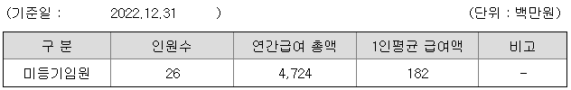 미등기임원의 평균연봉은 1억 8200만원이고 직원수는 26명입니다.