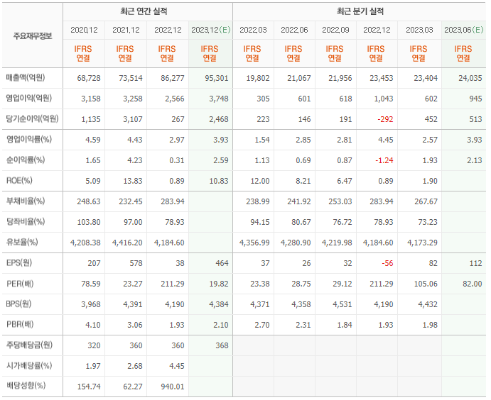 2022년 실적은 8조 6277억, 영업이익은 2566억입니다. 그리고 영업이익률은 2.97%입니다.