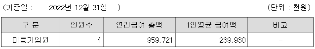 미등기임원의 평균연봉은 2억 3900만원이고 직원수는 4명입니다.