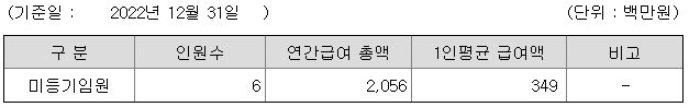 미등기임원의 평균연봉은 3억 4900만원이고 직원수는 6명입니다.