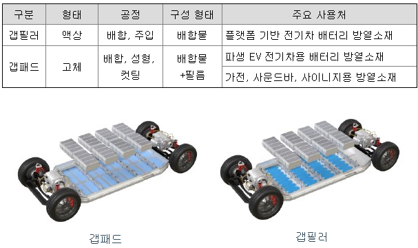 당사는 열관리 소재의 개발, 제조 및 판매를 주요 사업으로 영위하고 있습니다. 당사의 열관리 소재 제품은 주로 배터리팩, ICCU, OBC 등 전기차의 핵심부품에 사용되고 있으며, 그 외에 전기차의 전자, 전장부품 및 PTC히터, 각종 IT 전자기기에 사용되고 있습니다.