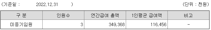 미등기임원의 평균연봉은 1억 1600만원이고 직원수는 3명입니다.