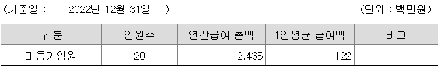 미등기임원의 평균연봉은 1억 2200만원이고 직원수는 20명입니다.