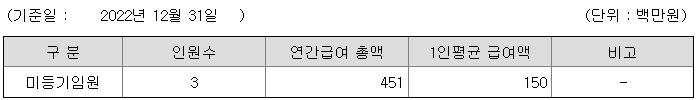 미등기임원의 평균연봉은 1억 5000만원이고 직원수는 3명입니다.