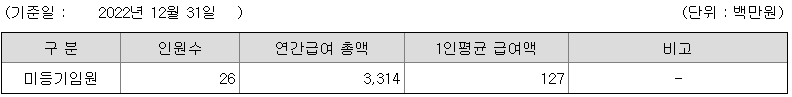 미등기임원의 평균연봉은 1억 2700만원이고 직원수는 26명입니다.