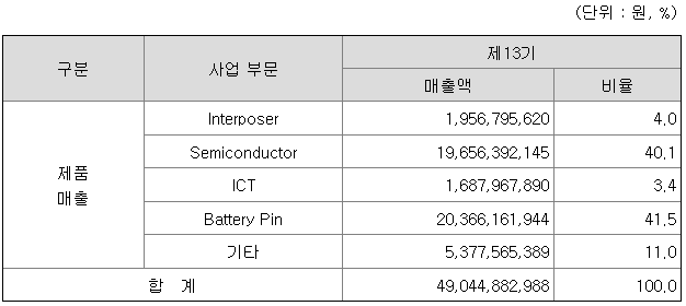 [사업부문별 주요 제품]