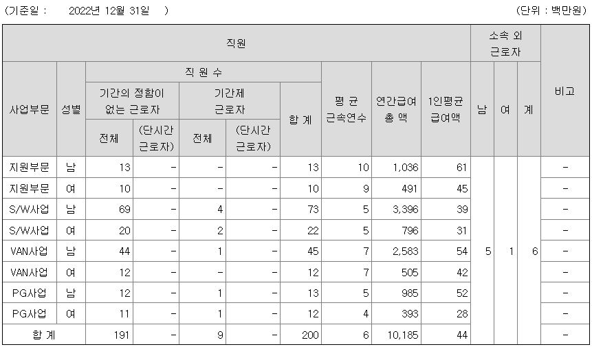 사업부문 성별 직원수 평균근속연수 평균연봉(백만)