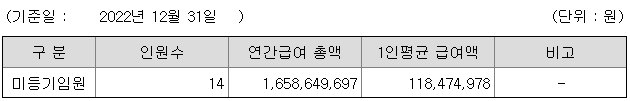 미등기임원의 평균연봉은 1억 1800만원이고 직원수는 14명입니다.
