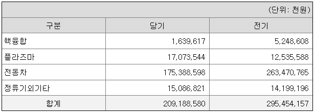 (2) 사업부문별 매출액