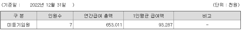 미등기임원의 평균연봉은 9300만원이고 직원수는 7명입니다.
