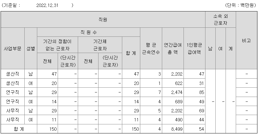 전체 평균연봉은 5400만원이고 직원수는 150명입니다.