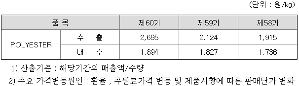 (2) 주요 제품 등의 가격변동추이