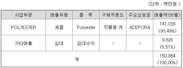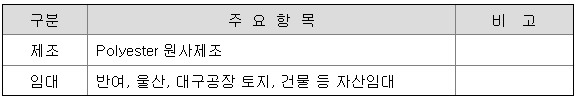 당사는 제조부분과 임대 두가지 사업부문을 영위하고 있습니다.