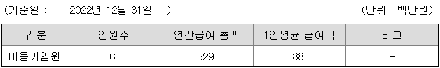 미등기임원의 평균연봉은 8800만원이고 직원수는 6명입니다.