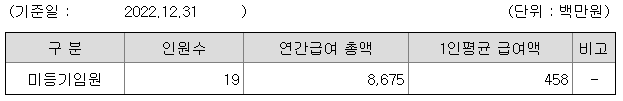 미등기임원의 평균연봉은 4억 5800만원이고 직원수는 19명입니다.