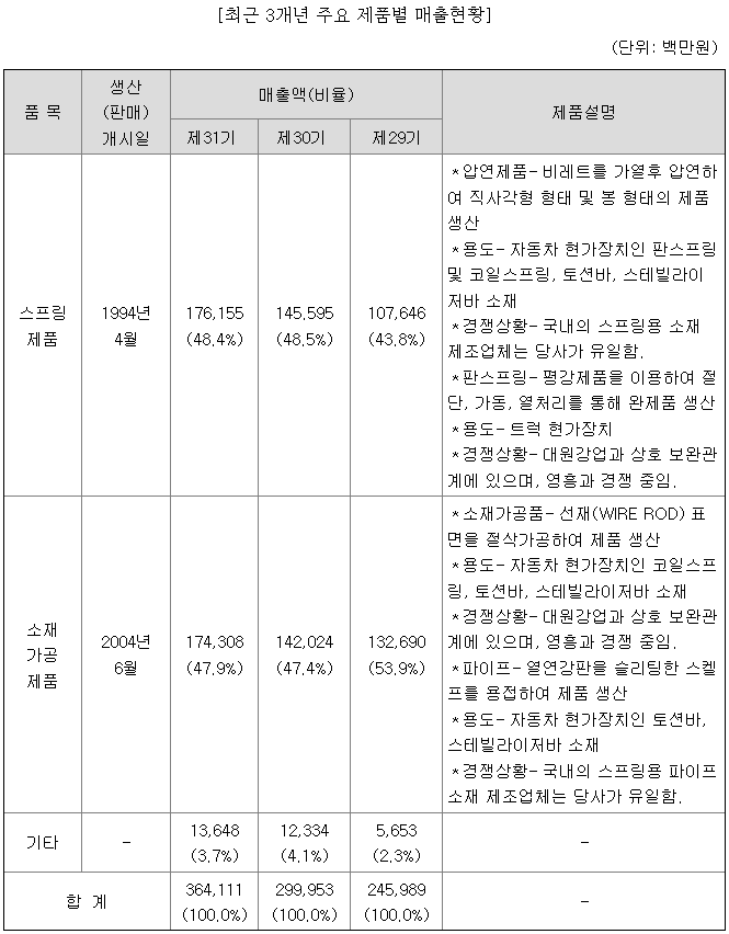 당사는 1992년 7월 평강 및 자동차용 판스프링의 제조 및 판매를 목적으로 설립되어1994년 공장을 준공하였습니다.