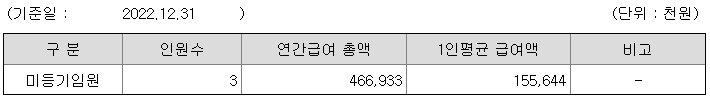 미등기임원의 평균연봉은 1억 5500만원이고 직원수는 3명입니다.