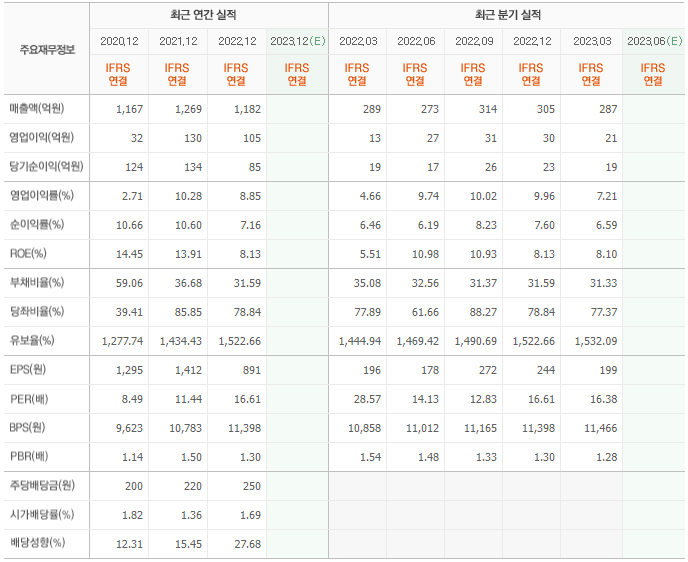 2022년 매출은 1182억, 영업이익은 105억, 당기순이익은 85억입니다. 그리고 영업이익률은 8.85%입니다.