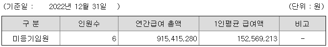 미등기임원의 평균연봉은 1억 5200만원이고 직원수는 6명입니다.