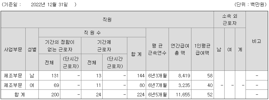 사업부문 성별 직원수 평균근속연수 평균연봉(백만)